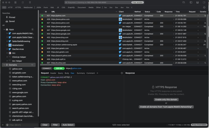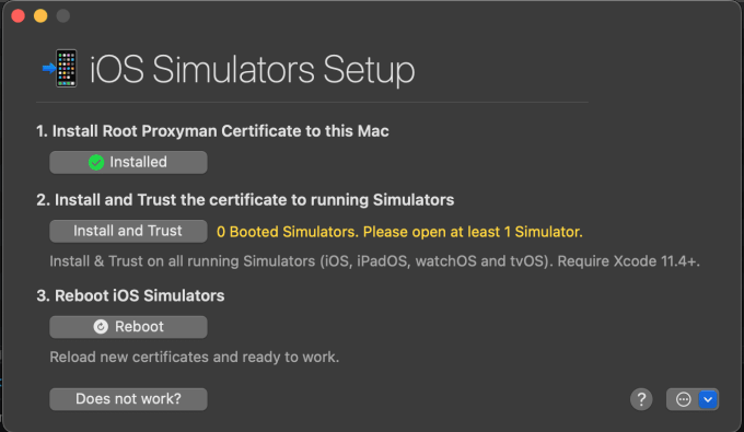 proxyman을 사용하여 네트워크 트래픽을 확인하고 디버깅할 수 있습니다.proxyman을 설치하고 난후 상단의 툴바에서 Certificate > Install Certificate on iOS > Simulators... 를 선택합니다.다음과 같은 가이드 창이 뜨게 되는데 순서대로 실행하시면 됩니다.시뮬레이터 이외에도 모든 네트워크의 모니터링이 가능하며, App별 도메인 별로 필터링이 가능하며, 다양한 필터링을 제공하여 디버깅시에 유용하여 proxyman을 추천드립니다.